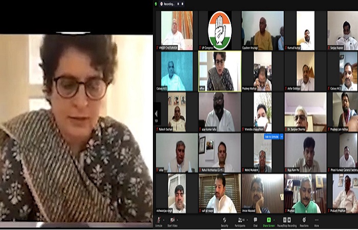लखनऊ, 14 अप्रैल 2021। अखिल भारतीय कांग्रेस की महासचिव श्रीमती प्रियंका गांधी ने वीडियो कांफ्रेंसिंग के जरिये कोरोना की भयावहता को देखते हुए आपात बैठक बुलाई। बैठक में प्रदेश अध्यक्ष, नेता कांग्रेस विधायक दल, पीसीसी के उपाध्यक्ष, महासचिव समेत राष्ट्रीय महासचिव के सलाहकार मण्डल और रणनीति समिति के सदस्य शामिल थे।