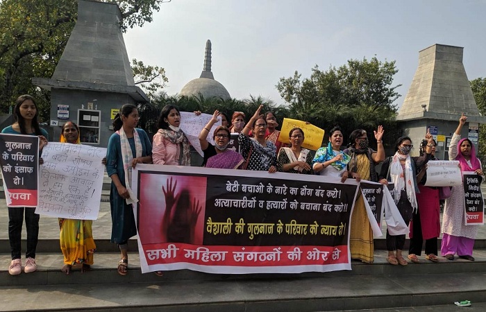 बिहार के वैशाली की गुलनाज के हत्यारों को सजा देने और उसके परिजनों को इंसाफ की मांग को लेकर बिहार के कई जिलों में महिला संगठनों ने विरोध प्रदर्शन किया। पटना में महिला संगठनों ने बुद्ध स्मृति पार्क के पास धरना प्रदर्शन किया। प्रदर्शन में लोगों को संबोधित करते हुए भाकपा माले विधायक दल के नेता महबूब आलम ने कहा कि इस सवाल को वह विधानसभा में भी उठायेंगे।