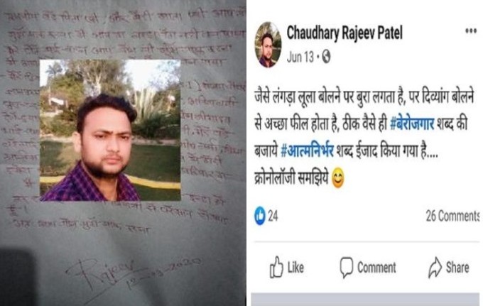 इलाहाबाद, अब प्रयागराज के छोटा बघाड़ा इलाके में रहने वाले एक प्रतियोगी छात्र राजीव पटेल ने हताश होकर ख़ुदकुशी कर ली। पता चला है कि वह बेरोज़गारी से बेहद परेशाना था। इस दौरान जिसे बड़े पैमाने पर नौकरियाँ जा रही हैं, इससे वह और हताश हो गया था। ठीक एक महीने पहले उसने प्रधानमंत्री मोदी की बेरोज़गारी के प्रति रवैये पर तंज़ करते हुए एक ट्वीट किया था।