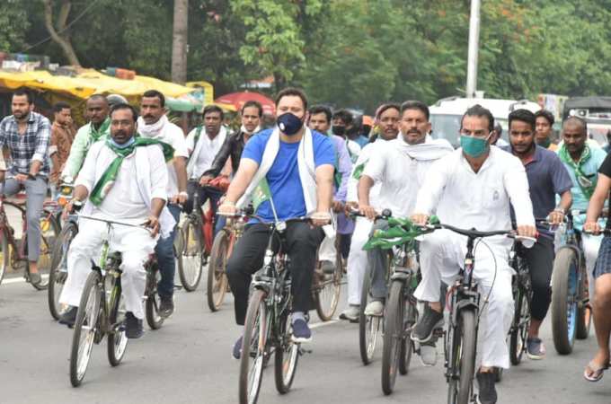 बिहार की पूर्व मुख्यमंत्री राबड़ी देवी के आवास से शुरू हुआ यह साइकिल मार्च डाकबंगला चौराहे पर खत्म हुआ। विरोध प्रदर्शन के दौरान तेजस्वी और तेजप्रताप यादव ने विरोध के तौर पर एक रस्सी के सहारे एक ट्रैक्टर को खींचते नजर आए।