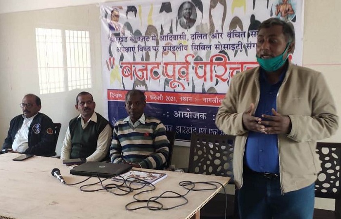 बता दें कि 12 फरवरी को राज्य के सामाजिक संगठनों का प्रमंडल स्तरीय बजट परिचर्चा, भोजन के अधिकार अभियान और राष्ट्रीय दलित मानवाधिकार अभियान के संयुक्त तत्वावधान में शांतिपुरी स्थित नागलोक उत्सव भवन में आयोजित की गयी।