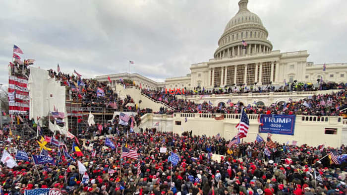 अमेरिकी लोकतंत्र को वैश्विक लोकतंत्र का सिरमौर माना जाता रहा है। इसे भारतीय मुहावरे में ‘लोकतंत्र का कलश’ कहा जा सकता है। लेकिन 2016 में रिपब्लिकन प्रत्याशी के रूप में निर्वाचित ट्रम्प ने अपनी ही राष्ट्र के कलश को शिखर से नीचे गिरा दिया। लोकतंत्र को धूलधूसरित कर डाला। अंधभक्तों या चरम नस्लवादियों की इस हिंसात्मक हरक़त को पर्यवेक्षकों ने ‘विद्रोह’ या ‘कू’ या ‘इन्सुररेक्शन’ की संज्ञा दी है। 2012 में रिपब्लिकन पार्टी के पूर्व राष्ट्रपति- उम्मीदवार मिट रोमनी ने कहा “राष्ट्रपति की वजह से यह सब कुछ हुआ है। यह विद्रोह है।” चरमपंथी-नस्लपंथी भक्तों की उग्रता को देखकर टीयर गैस छोड़ी गई। हिंसा हुई। खबर है कि चार लोग मर चुके हैं। करीब 50 लोगों को गिरफ्तार किया गया। हिंसा को देखते हुए निवर्तमान उपराष्ट्रपति पेन्स को चेतावनी देनी पड़ी, “हमारी कैपिटोल पर इस हमले को बरदाश्त नहीं किया जायेगा और जो इसमें लिप्त हैं उनके साथ कानून अच्छी तरह से निपटेगा”। उनकी यह चेतावनी ट्वीट ज़रिये देश को दी गई। उपराष्ट्रपति ने भी इसे विद्रोह कहा। उन्होंने गहरी नाराज़गी जाहिर करते हुए कहा “यह विरोध या प्रतिवाद नहीं है, विद्रोह है।”उन्होंने अपने राष्ट्रपति यानि बॉस ट्रम्प से कहा कि वे टेलीविज़न पर राष्ट्रीय सम्बोधन करें और जनता से कहें कि अपनी शपथ के अनुसार संविधान की रक्षा करेंगे।