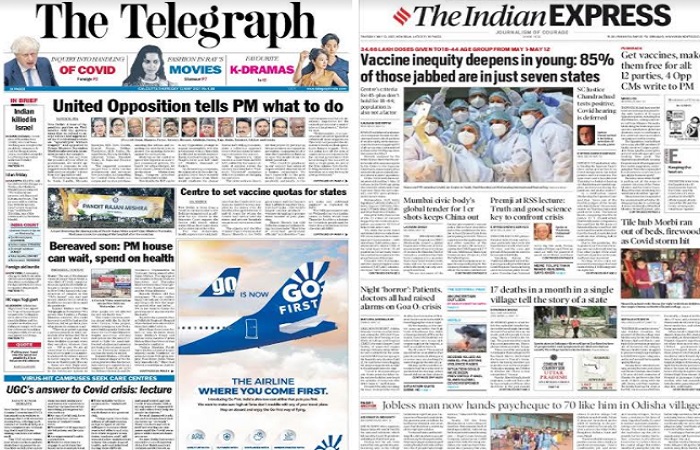 ऐसी हालत में विपक्ष के मुख्यमंत्रियों और अन्य नेताओं ने प्रधानमंत्री को साझी चिट्ठी लिखी यह अपने आप में एक बड़ी घटना है। पर टाइम्स ऑफ इंडिया ने इस खबर को पहले पन्ने पर सिंगल कॉलम में निपटा दिया। हिन्दुस्तान टाइम्स की कहानी बता ही चुका। इंडियन एक्सप्रेस में खबर पहले पन्ने पर तो है लेकिन लीड नहीं बनी। द हिन्दू में यह खबर चार कॉलम में लीड है। इसका शीर्षक है, विपक्ष ने प्रधानमंत्री से सबके लिए मुफ्त टीकाकरण की अपील की। द टेलीग्राफ ने इस खबर को सात कॉलम में छापा है और विपक्षी नेताओं की तस्वीर के साथ शीर्षक लगाया है, एकीकृत विपक्ष ने प्रधानमंत्री से कहा कि क्या करें। पर प्रधानमंत्री तो बाद में, मीडिया को ही चिट्ठी की महत्ता समझ में नहीं आई।