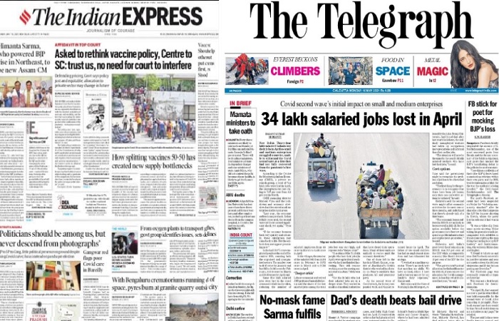 असम में आज भाजपा की सरकार बनेगी और हिमन्त बिस्व शर्मा मुख्यमंत्री के रूप में शपथ लेंगे। द टेलीग्राफ में इसका शीर्षक है, मास्क को गैर जरूरी बताकर मशहूर हुए सरमा ने मुख्यमंत्री बनने का सपना पूरा किया। इस खबर के अनुसार भाजपा को इस निर्णय पर पहुंचने में सात दिन लगे। और उसने सुनिश्चित किया कि सत्ता का स्थानांतरण सहज हो और इसके लिए सोनोवाल से ही उनके उत्तराधिकारी के नाम का प्रस्ताव करवाया गया है। इसमें कुछ नया नहीं है। पहले भी यह सब होता रहा है। पहले खूब छपता भी था अब बहुत कम छपता है। पेश हैं कुछ अन्य शीर्षक