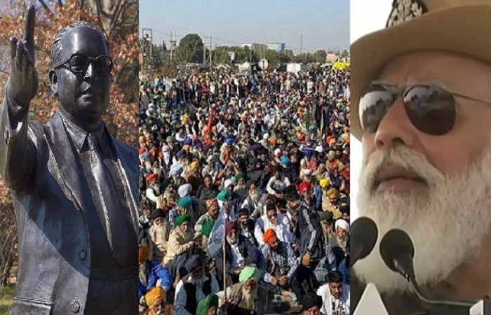 आज बाबा साहब डा. अंबेडकर का परिनिर्वाण दिवस है। आज के किसान संघर्ष में अंबेडकर की याद आना स्वा भाविक है। भारत में खेती के विकास के लिए उन्होंने को – ऑपरेटिव खेती का मार्ग सुझाया था। लेकिन आज की सरकार ने कॉर्पोरेट खेती लाना चाहती है। डा. अंबेडकर ने 1918 मे ‘स्मॉल होल्डिंग्स इन इंडिया एंड देयर रेमेडीज़’ शीर्षक एक लेख लिखा था जिसमें उन्होंने भारत में छोटी आकार की बिखरी जोतों की समस्या को उठाया था। उनका कहना था कि बिखरी हुई जोतों और पर्याप्त पूंजी व संसाधन के अभाव में कृषि से अपेक्षित लाभकारी मूल्य की प्राप्ति संभव नहीं है। इसलिए भारत में कृषि सेक्टर के विकास के लिए दो मोर्चों पर सुधार की जरूरत है पहली तो यह कि सरकार कृषि कार्य के लिए संसाधान और पूँजी मुहैया कराये और दूसरा यह कि जोतों का आकार बढ़ाया जाय, पर इसके लिए वे चकबंदी – हदबंदी और काश्तकारी विधान को उचित नहीं मानते। वे कहते हैं कि भारत की सामाजिक परिस्थितियां व जमींदार व खेत मजदूर के रूप में विभाजित सामंती उत्पादन संबंध की वजह से चकबंदी इस उद्देश्य को पूरा नहीं कर सकती। उसके अलावा परिवारों के विभाजन के साथ फिर से भूमि का आकार छोटा होता जाता है।