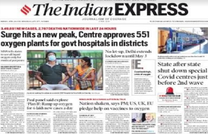 इस तरह, मामला यह है कि इतने दिनों में दिल्ली / एनसीआर के अस्पतालों या बीमारों के लिए पर्याप्त ऑक्सीजन की व्यवस्था नहीं हो पाई है पर गुड़गांव के अस्पताल में चार लोगों के मरने की खबर (शीर्षक के रूप में) मुझे टाइम्स ऑफ इंडिया के अलावा कहीं नहीं दिखीं। आज के अखबारों में पहले पन्ने पर कुछ परस्पर विरोधी खबरें हैं उसी अखबार में या किसी और में। उदाहरण के लिए, मन की बात के आधार पर टाइम्स ऑफ इंडिया की खबर का शीर्षक है, “कोविड की दूसरी लहर ने देश को हिला दिया है: प्रधानमंत्री।” यह एक स्वीकारोक्ति है पर हिन्दुस्तान टाइम्स में इसी खबर का शीर्षक है, “…. दूसरी लहर ने हमें चौंकाया पर हम जीतेंगे”। कहने की जरूरत नहीं है कि, “हम जीतेंगे” – 15 लाख मिलेंगे जैसा खोखला दावा है और अभी उसका कोई आधार भी नहीं है। लेकिन हिन्दुस्तान टाइम्स ने इस खबर के साथ सरकारी प्रचार की खबर छापी है, पीएम केयर्स के तहत 551 जिलों को पीएसए मेडिकल ऑक्सीजन प्लांट मिलेंगे। इंडियन एक्सप्रेस ने तो इसे लीड में शामिल कर लिया है। कहने की जरूरत नहीं है कि यह निर्णय बहुत पहले हो जाना चाहिए था और अब हुआ है तो कोई बड़ी बात नहीं है लेकिन प्रचार है तो पहले पन्ने पर होना ही है।