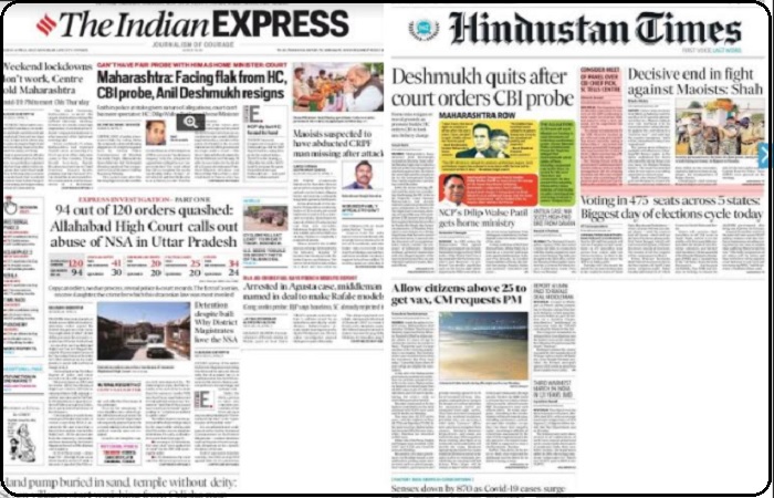 महाराष्ट्र के गृहमंत्री अनिल देशमुख ने आखिरकार इस्तीफा दे दिया, रफाल सौदे में भ्रष्टाचार का मामला खत्म ही नहीं हो रहा है, आज राज्यों के विधानसभा चुनावों के तीसरे चरण के मतदान के बाद पश्चिम बंगाल के पांच चरण रह जाएंगे और छत्तीसगढ़ में सुरक्षा बलों पर हमले के बाद एक पार्टी विशेष के पक्ष में बनने वाले माहौल का क्या होगा – सब देखने समझने की बातें हैं। आज 475 सीटों पर मतदान है, यह भी एक खबर है तो कोरोना का मामला अपनी जगह है ही। महाराष्ट्र के गृहमंत्री के मामले की जांच होनी है और सीबीआई प्रमुख का पद खाली है। टाइम्स ऑफ इंडिया की एक खबर के अनुसार इसके लिए उच्चाधिकार समिति की बैठक लगभग एक महीने बाद, 2 मई को होगी। इससे पहले, सीबीआई प्रमुख को हटाने की आधी रात की कार्रवाई आपको याद होगी। अर्थव्यवस्था की खराब हालत, जीएसटी वसूली बढ़ने के प्रचार के बीच निर्माण गतिविधि सात महीने में सबसे कम (धीमी) होने की खबरों के बीच एक खबर यह भी है कि विदेश मंत्री जयशंकर आज रूसी विदेश मंत्री से मिलेंगे। पहले पन्ने पर इतनी सारी खबरों के बीच कौन सी खबर कैसे छपी है कहां नहीं छपी है बताने से जरूरी आज इंडियन एक्सप्रेस की एक्सक्लूसिव खबर की चर्चा करना है।