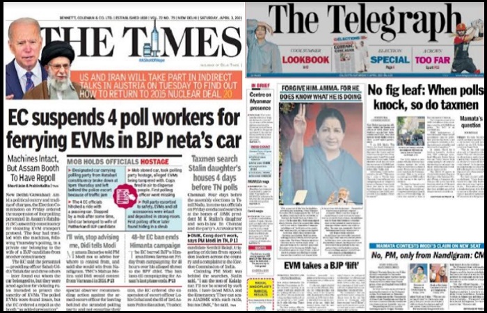 आज के अखबारों में सबसे दिलचस्प खबर है, असम में एक भाजपा नेता की गाड़ी में ईवीएम मिलना, उसपर चुनाव आयोग की सफाई और कथित कार्रवाई। पांच में से चार अखबारों ने इस मामले में वही छापा है जो चुनाव आयोग की विज्ञप्ति में कहा गया है। चुनाव आयोग ने इस मामले में चार लोगों को निलंबित किया है और पुनर्मतदान का आदेश दिया है। इस लिहाज से खबर जैसी है वैसी छपी है। पर इसका एक रूप वह भी है जो टेलीग्राफ ने छापा है, ईवीएम टेक्स अ ‘लिफ्ट‘। मैंने कल लिखा था, “…. सोशल मीडिया पर खबर थी कि असम में भाजपा के एक उम्मीदवार की गाड़ी में ईवीएम मिले। यह खबर आज पहले पन्ने पर नहीं है। कल्पना कीजिए, बंगाल में या नन्दीग्राम में मिला होता, खास कर ममता बनर्जी की गाड़ी में तो क्या और कैसी खबर होती। चुनाव आयोग के लिए तो हरेक उम्मीदवार बराबर हैं पर अंतर दिखता है।”