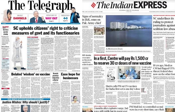 द हिन्दू में इस खबर का शीर्षक है, पत्रकारों को देशद्रोह के आरोप से सुरक्षा की आवश्यकता है। इंडियन एक्सप्रेस में इसका शीर्षक है, देशद्रोह कानून के दुरुपयोग के खिलाफ पत्रकारों की रक्षा के अपने फैसले को सुप्रीम कोर्ट ने रेखांकित किया। इसी खबर का शीर्षक द टेलीग्राफ में इस प्रकार है, “सुप्रीम कोर्ट ने सरकार और उसके कर्ता-धर्ताओं के उपायों की आलोचना करने के नागरिकों के अधिकार को बनाए रखा। दूसरे अखबारों में जहां पत्रकार लिखा गया है वहां द टेलीग्राफ में नागरिक लिखा गया है। दूसरे अखबारों ने नागरिकों को उनके अधिकार बताए ही नहीं और उसे पत्रकारों का विशेष अधिकार बना दिया। सरकार की यह सेवा अखबार वाले क्या मुफ्त में कर रहे होंगे? कीमत तो जनता को ही चुकाना है।