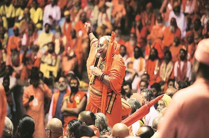 नवभारत टाइम्स में यह खबर लीड है। शीर्षक है, संतों ने किया एलान, मंदिर अभी बनाएंगे। पूनम पांडे की खबर की शुरुआत इस प्रकार है, राम मंदिर के लिए 1992 जैसे आंदोलन के संघ से मिले संकेत के अगले ही दिन राजधानी में राम मंदिर के लिए हचलच तेज हो गई। तालकटोरा स्टेडियम में जुटे 1000 से ज्यादा (दूसरे अखबारों ने तीन हजार और उससे भी ज्यादा लिखा है) संतों ने दिसंबर में ही राम मंदिर का काम शुरू करने का एलान कर डाला। आज राम मंदिर पर प्रस्ताव भी पास किया जाएगा। अखबार ने धर्म संत महासम्मेलन की फोटो दो कॉलम में लगाई है। इसके नीचे सिंगल कॉलम में दो खबरें हैं। एक का शीर्षक है, “6 दिसंबर को मंदिर का शिलान्यास?” और दूसरी खबर का शीर्षक है, “मूर्ति बनाने से रोका तो देख लेंगे : डिप्टी सीएम”।