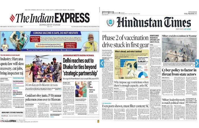 28 फरवरी से शुरू करके कल चार मार्च तक रोज टीके की खबर को लीड बनाने वाले इंडियन एक्सप्रेस ने आज टीके की ही एक खबर को लीड नहीं बनाया है लेकिन पहले पन्ने पर रखा है। यह खबर बाकी के चार अखबारों में सिर्फ हिन्दुस्तान टाइम्स में पहले पन्ने पर है। हालांकि, हिन्दुस्तान टाइम्स ने पहले पन्ने टीके की ही एक खबर को लीड बनाया है जो इंडियन एक्सप्रेस में पहले पन्ने पर नहीं है। आज सबसे पहले टीके से संबंधित इन्हीं दो खबरों की चर्चा। हिन्दुस्तान टाइम्स की लीड का शीर्षक है, “टीकाकरण अभियान का दूसरा चरण पहले गीयर में अटका है”। बेशक यह एक महत्वपूर्ण खबर है और इन दिनों टीकाकरण अगर जानने-समझने का विषय है तो इसलिए नहीं छोड़ दिया जाना चाहिए कि हम पांच दिन छाप चुके। हिन्दुस्तान टाइम्स ने इसी खबर के साथ छापा है, “जब पर्याप्त क्षमता है तो आयु के प्रतिबंध क्यों लगाए जाएं : हाईकोर्ट ने पूछा”।