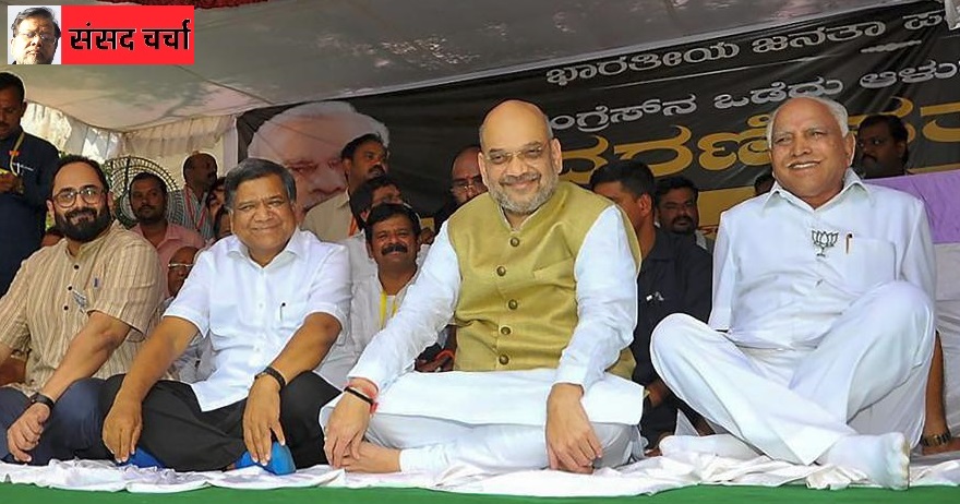 कांग्रेस पर आरोप लोकसभा के भीतर भी थे, लोकसभा की कार्यवाही नहीं चलने देने के आरोप, लेकिन अकेले उस पर नहीं थे। ये आरोप, सदन में जो कुछ हो रहा था, उसके मेल में भी नहीं थे। अकेले संसदीय कार्यमंत्री अनंत कुमार जरूर मेहुल भाई और उनके भांजे नीरव मोदी के पंजाब नेशनल बैंक को 11,500 करोड़ रुपये का चूना लगाकर विदेश भाग निकलने के प्रकरण पर उत्तेजित विपक्ष के शोर के बीच 6 मार्च को तृणमूल कांग्रेस, टी.आर.एस. और शिवसेना के साथ कांग्रेस को भी अपनी सीटों पर लौट जाने की नसीहत देते सुने गये थे। उन्होंने बाद में भी कुछेक मौकों पर सदन नहीं चलने देने के लिये कांग्रेस को सीधे या परोक्ष तौर पर जिम्मेदार बताया, लेकिन कम-से-कम बजट सत्र के दूसरे चरण में 5 मार्च से 6 अप्रैल तक शायद ही कभी कांग्रेस के सदस्य, अध्यक्ष के आसन के सामने जमे या अपनी सीटों के पास खड़े होकर शोर षोर करते देखे गये हों। अमूमन और कम-से-कम 12-13 मार्च से तो हर रोज अध्यक्ष के आसन के सामने, कावेरी विवाद और आंध्रप्रदेश को विशेष दर्जा देने जैसी कुछ मांगों को लेकर कुछ प्रादेशिक दलों के सदस्यों का जमाव और धीरे-धीरे अनिच्छुक सी होती गयी नारेबाजी थी, जो सदन में ‘आर्डर के विध्वंस’ के लिये काफी थी। हर रोज कागजात सदन के पटल पर रखे जाने के बाद स्पीकर ने दो-चार मिनट में ही घंटे-दो घंटे के लिये नहीं, एकबारगी दिन भर के लिये सदन की कार्यवाही स्थगित भले कर दी हो और मंत्रिपरिषद में अविश्वास के छह-छह नोटिस सदन में व्यवस्था नहीं होने की भेंट भले चढ गये हों, इसके लिये स्पीकर ने शायद ही कभी कांग्रेस की ओर इंगित किया हो। अकारण नहीं था कि सीधे कांग्रेस को निशाने पर लेने और धरने-प्रदर्शन-उपवास के लिये प्रधान सेवक और उनकी पार्टी ने बजट सत्र समाप्त होने का इंतजार किया- पहले, सुबह अनंत कुमार ने धरनास्थल पर प्रेस से बातचीत में और फिर प्रधान सेवक ने मुम्बई में पार्टी के 38वें स्थापना दिवस को संबोधित करते हुए। और दोनों का लब्बोलुआब यह था कि ‘‘जनादेश को, एक गरीब मां के बेटे के प्रधानमंत्री बन जाने को, पिछडे वर्ग के लोगों के देश के शीर्ष पदों पर पहुंच जाने को और भाजपा की बढ़ती ताकत को कांग्रेस और उसका शीर्ष नेतृत्व पचा नहीं पा रहा है, दोनों सदनों को वह इसीलिये काम नहीं करने दे रहा है।’