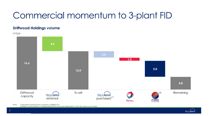 टेल्यूरियन की मुख्य कार्यकारी अधिकारी मेग जेंट्ल ने कहा कि “पेट्रोनेट 28 अरब डॉलर के ड्रिफ्ट्वूड एलएनजी टर्मिनल में 18% इक्विटी हिस्सेदारी के लिए 2.5 अरब डॉलर देगा जो इस परियोजना में अब तक की सबसे बड़ी बाहरी होल्डिंग होगी और प्रति वर्ष 5 मिलियन टन गैस की खरीद के लिए बातचीत करेगा”।
