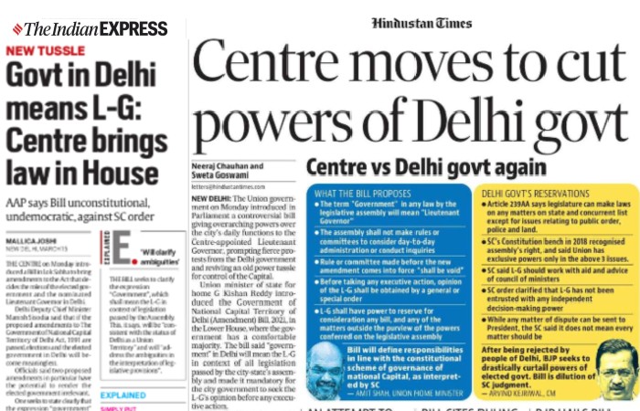 आज की सबसे बड़ी खबर है, दिल्ली सरकार के अधिकार कम करने की केंद्र सरकार की कोशिश। यह एक गंभीर और पुराना राजनीतिक मुद्दा है। इसका संबंध आम लोगों से भी है। इसलिए, भारतीय जनता पार्टी जब सत्ता में नहीं थी तो दिल्ली को पूर्ण राज्य का दर्जा देने की बात करती थी। पर पूरी कोशिश करके भी उसे दिल्ली में सरकार बनाने का मौका नहीं मिला। दूसरी तरफ केंद्र में उसकी सरकार है और दिल्ली के सभी सांसद भाजपा के हैं। ऐसे में वह पलट गई है या मनमानी कर रही है। आज की खबर इस लिहाज से महत्वपूर्ण है और कायदे से यह खबर इस तथ्य के आलोक में होनी चाहिए। शीर्षक में भी यह बात हो सकती है। आइए, देखें इस महत्वपूर्ण राजनीतिक खबर को अखबारों ने कैसे छापा है। कायदे से खबर यह है कि दिल्ली को पूर्ण राज्य का दर्जा देने पर भाजपा ने पलटी मारी अब एलजी के जरिए राज करने का इंतजाम। पर ऐसे शीर्षक का जमाना गया। चूंकि इस खबर को कम महत्व देना संभव नहीं था इसलिए, खबर लीड तो है पर बिना धार की।