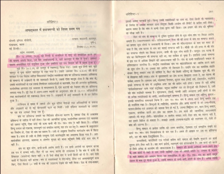 आरएसएस की दोहरी तैयारी कितनी जोरदार थी इसका अनुमान हम इस बात से लगा सकते हैं कि आरएसएस के तीसरे सरसंघचालक मधुकर दत्तात्रेय देवरस (बालासाहेब देवरस) ने 22 अगस्त 1975 को यरवडा जेल से प्रधानमंत्री इंदिरा गांधी को चिट्ठी लिखी थी जिसमें उन्होंने 15 अगस्त को लालकिले के प्राचीर से दिए गए इंदिरा के भाषण की जोरदार तारीफ की थी और सफाई देते हुए कहा था कि ‘’राष्ट्रीय स्वयंसेवक संघ सार्वजनिक शांति, कानून व्यवस्था और आंतरिक सुरक्षा में कभी बाधा नहीं बनता। मेरी प्रार्थना है कि आप संघ को प्रतिबंध से मुक्त करें।‘’