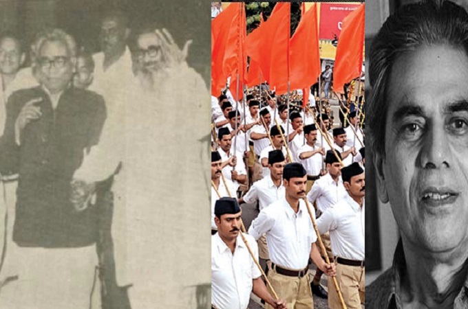 इस तस्वीर में समाजवादी पुरोधा डॉ.राममनोहर लोहिया और आरएसएस के सरसंघचालक गुरु गोलवलकर एक दूसरे का हाथ थामे हुए हैं। ख़ुद को ‘कुजात गाँधीवादी’ कहने वाले डॉ.लोहिया काँग्रेस को हराने के लिए ‘शैतान’ से भी हाथ मिलाने के लिए तैयार थे। उन्होंने आरएसएस के राजनीतिक चेहरे जनसंघ को अपने संयुक्त मोर्चे में शामिल कर लिया। इस रणनीति ने 1967 में काँग्रेस को हराकर उत्तरी भारत के कई राज्यों में संयुक्त विधायक दल (संविद) की सरकारें बनाने का करिश्मा कर डाला। लेकिन समाजवादी धारा के तमाम विचारक डॉ.लोहिया के इस प्रयोग से जुड़े ख़तरे को समझ रहे थे। वे मानते थे कि गाँधी की हत्या के लिए ज़िम्मेदार आरएसएस विचारधारा और समाजवादियों के मेल का कोई तुक नहीं है। वरिष्ठ समाजवादी चिंतक मधु लिमये ने डॉ ़लोहिया से इस मसले पर काफ़ी बहस की थी, लेकिन डॉ.लोहिया ने नेता होने का हवाला देते हुए आरएसएस से रिश्ते को एक ‘ट्रायल’ देने की बात मानने को मजबूर कर दिया। 1995 में दिवंगत होने के पहले मधु लिमये ने इस ग़लती पर विस्तार से लिखा जिसका ख़ामियाज़ा आज पूरे देश को भुगतना पड़ रहा है। पेश है आत्मकथात्मक शैली में लिखा गया उनका एक लेख जिसमें उन्होंने आरएसएस और अपने मतभेद पर विस्तार से चर्चा की है-संपादक