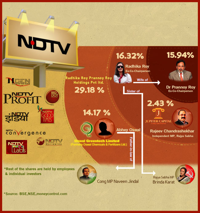 यह शुरुआती फिसलन बाद के दिनों की आहट थी जिसने एनडीटीवी के स्वामित्व को लेकर काफी विवाद खड़ा किया जो आज तक कायम है। जुलाई 2009 में रिलायंस इंडस्ट्रीज़ लिमिटेड (आरआइएल) से जुड़ी एक कंपनी विश्वप्रधान कॉमर्शियल प्राइवेट लिमिटेड ने बिना किसी ब्याज के एनडीटीवी के मालिक प्रणय रॉय, उनकी पत्नी राधिका रॉय और इनकी प्राइवेट होल्डिंग कंपनी आरआरपीआर होल्डिंग प्राइवेट लिमिटेड को 350 करोड़ :पये का कर्ज दिया। यह कर्ज की शक्ल में कंपनी को कर्ज के संकट से मुक्ति दिलाकर उसके स्वामित्व के ऊपर कब्ज़ा करने की कवायद थी।