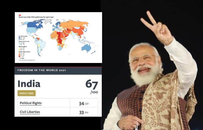और किसी देश का लोकतंत्र विकलांग हो जाये, तो उसके नागरिकों की आजादी क्योंकर सकलांग या पूरी बनी रह सकती है? अमेरिकी सरकार द्वारा वित्तपोषित गैर-सरकारी संगठन ‘फ्रीडम हाउस’ ने गत गुरुवार को अपनी सालाना वैश्विक स्वतंत्रता रिपोर्ट में शायद यही जताते हुए नागरिकों की आजादी के लिहाज से भारत के दर्जे को ‘स्वतंत्र’ से घटाकर ‘आंशिक रूप से स्वतंत्र’ कर दिया है। साल 2020 के आंकड़ों के आधार पर तैयार की गई इस रिपोर्ट में इस साल के फ्रीडम स्कोर के लिहाज से भारत की रैंक 100 में 67 है, जो साल 2020 में 100 में से 71 थी।