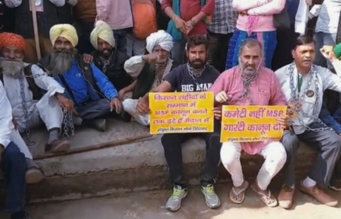 दरअसल, किसानों द्वारा खुद को बेड़ियों में बांधकर प्रदर्शन करने के पीछे उनका कहना है कि 70 साल से किसानों को बंदी बनाकर रखा जा रहा है। यही वजह है कि उन्होंने सरकार को चेतावनी देने के लिए खुद को जंजीरों में जकड़ रखा है। बैठक के दौरान किसानों ने दो टूक कहा था कि उन्हें एमएमपी पर कमेटी का गठन मंजूर नहीं है। अब सरकार सीधे एमएसपी गारंटी कानून बनाए, तभी किसान यहां से वापस जाएंगे। हालांकि, संयुक्त किसान मोर्चा ने बैठक में 5 सदस्यों की कमेटी मनाई है जो सरकार से अपनी मांगों को लेकर हर मुद्दे पर बात करेंगी।