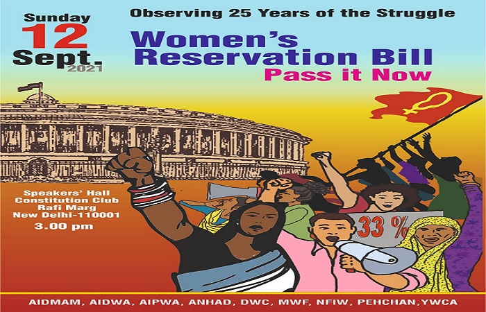 महिला आरक्षण की बहुचर्चित माँग को विधेयक की शक्ल में संसद में पेश हुए आज 25 साल पूरे हो गये। यह शर्म की बात है कि देश की संसद उस पर चुप्पी साधकर काफी संतुष्ट है। वह भी तब, जब शासक दल भाजपा सहित सभी प्रमुख राजनीतिक दलों ने अपने घोषणापत्र में वायदा किया है कि वे उसे पारित करने के लिए प्रतिबद्ध हैं।
