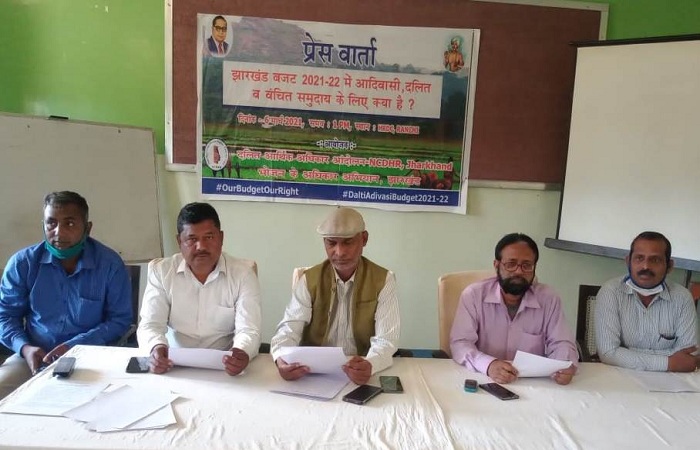 प्रेस कांफ्रेंस में वरिष्ठ समाजिक कार्याकर्ता बलराम ने कहा कि झारखंड के 2021-22 बजट में स्वास्थ्य, भोजन और पोषण तथा शिक्षा को केन्द्रित कर बजट होना चाहिए था, मगर इस बजट में आदिवासी व दलित समुदाय की मुख्य समस्या स्वास्थ्य, भोजन व पोषण को केंद्रित नहीं किया गया है। उन्होंने कहा कि झारखंड की जनता को वर्तमान सरकार से आशा थी कि बजट में आदिवासी दलित व अल्पसंख्यकों के विकास को केंद्रित किया जायेगा, परंतु आदिवासी दलित व अल्पसंख्यकों की योजनाओं में इस वर्ष कटौती कर दी गई है, जबकि इस बढ़ाया जाना चाहिए था।