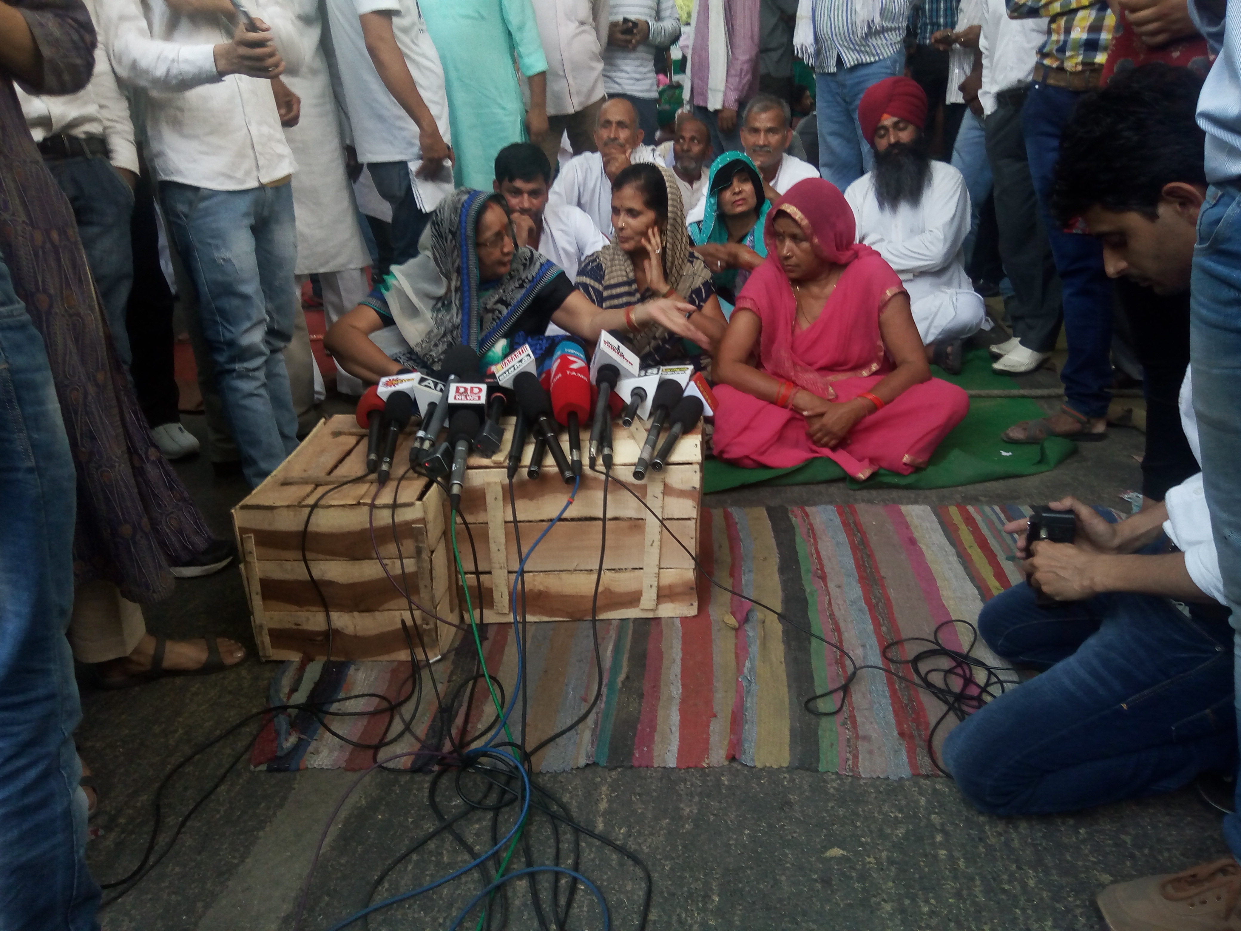 उसके बाद कहने पर उन्होंने अपनी कहानी बतानी शुरू की। वे सब ग़ाजि़याबाद के लोनी से आई थीं अपने नेता मनवीर तेवतिया के साथ। इनकी ज़मीन हड़प ली गई थी। आई थीं समर्थन देने तमिलनाडु के किसानों को, तो सोचा कैमरे देखकर लगे हाथ अपनी बात भी कह देंगी। कैमरावालों को यह बात समझ में नहीं आई। उन्होंने कैमरा ऑन नहीं किया। रिपोर्टराएं कुमार विश्वास पर पीटीसी करने की तैयारी करने लगीं। भला हो कुछ युवाओं का, जिन्होंने माजरा समझते ही अपने-अपने मोबाइल कैमरे तान दिए और एक समानांतर प्रेस कॉन्फ्रेंस वहीं पर हो गई।